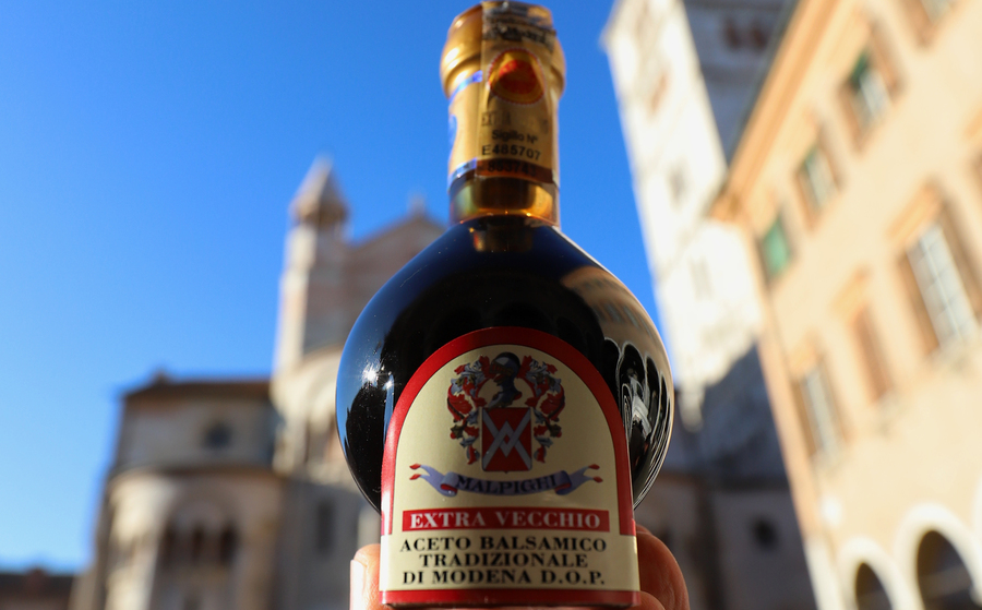 L’Aceto Balsamico Tradizionale di Modena DOP Extra Vecchio Malpighi premiato ha caratteristiche di invecchiamento di oltre 25 anni, si caratterizza per la densità elevata, il profumo intenso e persistente, un sapore pienamente armonico e maturo.